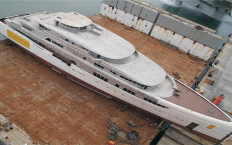 來福士88米豪華游艇船體及上建材料;鋁合金總長:88.8米 型寬:15.6米上建:3層鋁合金上建 航速:17節(jié)